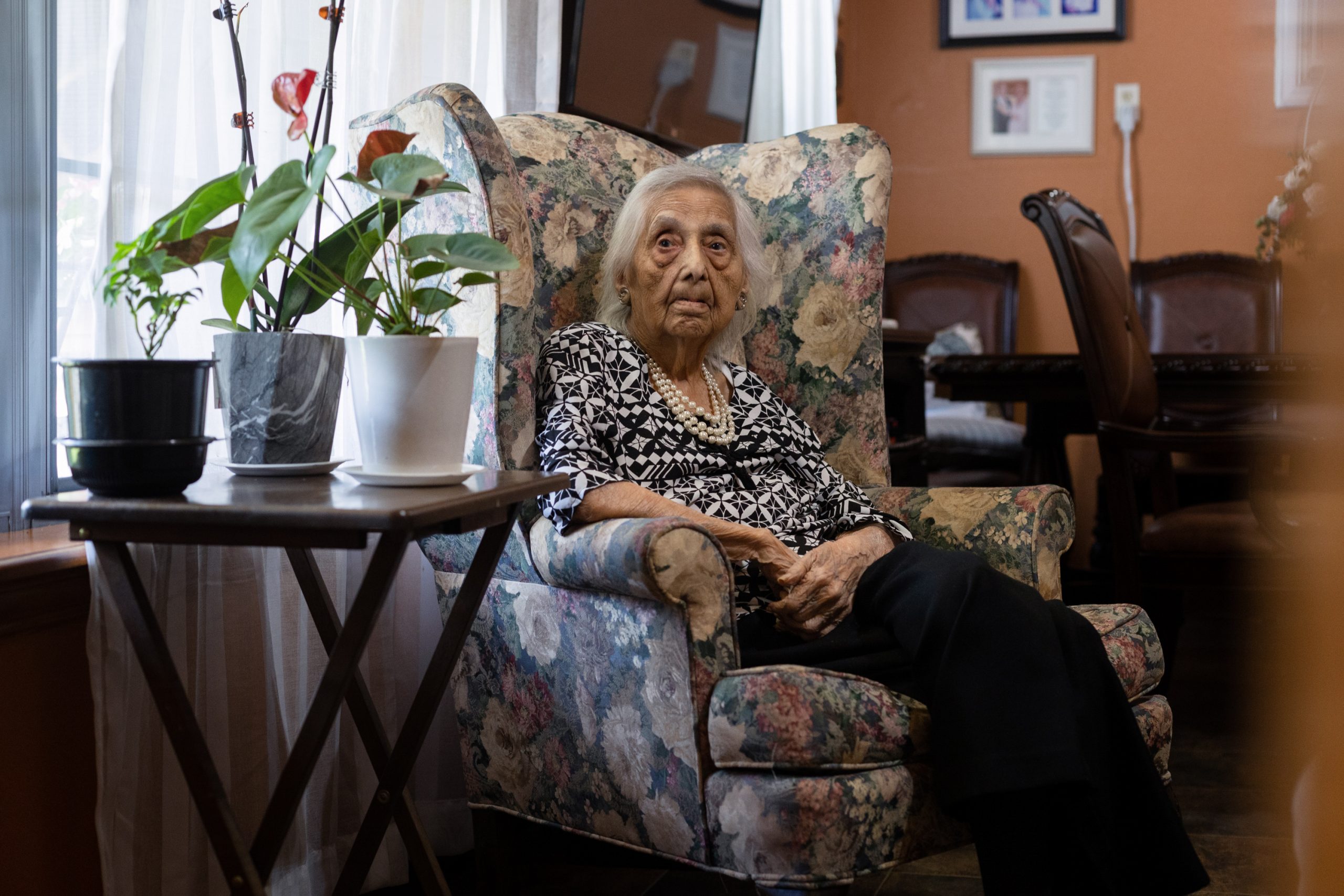 First: Civil rights activist Genoveva Morales in her home in Uvalde on June 9. Last: Morales Junior High School in Uvalde is named after her. Credit: Evan L’Roy for The Texas Tribune
