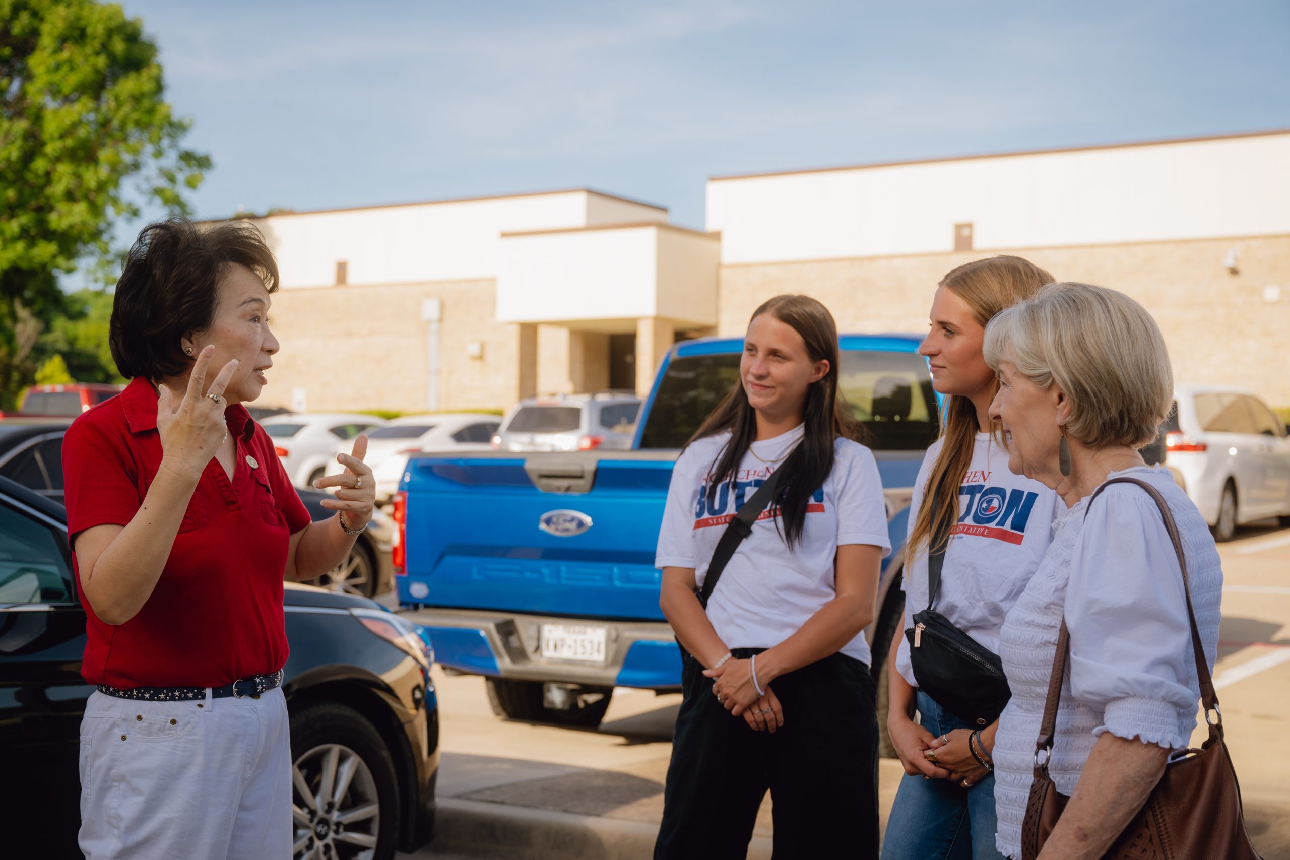 Early in her career and in subsequent campaigns, Button leaned hard into her unique profile as an immigrant who rose from childhood poverty in Taiwan to a successful career in Texas through school and hard work.